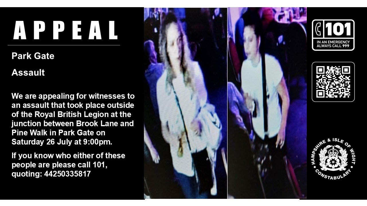 Hampshire Police are appealing for witnesses to an assault that took place outside of the Royal British Legion at the junction between Brook Lane and Pine Walk in Park Gate on Saturday 26 July.